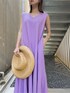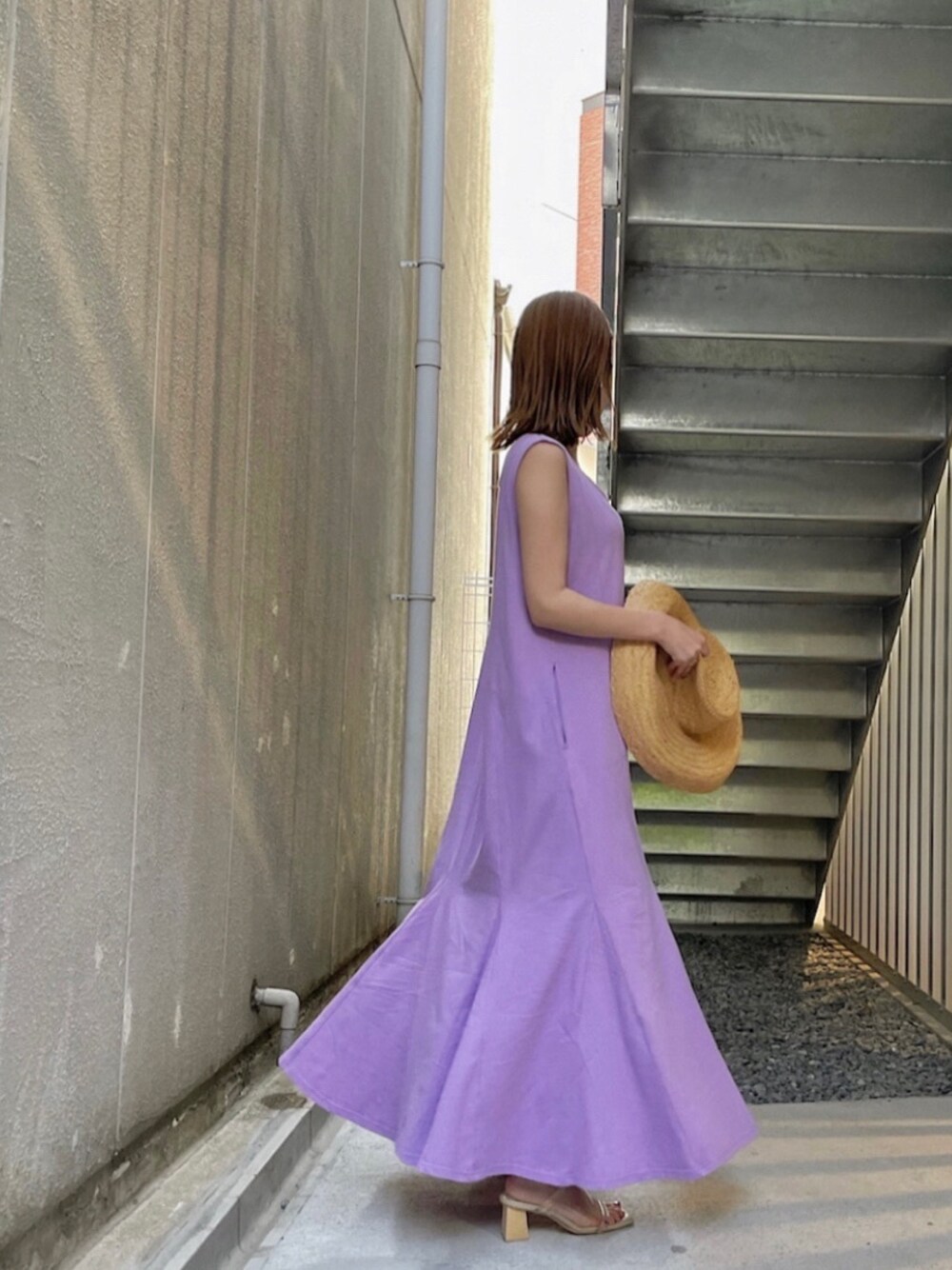 -LAGUNAMOON HOME- 【ワンピース】私は、休日海沿いデートをイメージしてダスティーカラーがオトナカワイイパープルのワンピースを選びました!バサッと着られるカットソー素材のワンピースは、アームが広いので汗が気になりにくく風通し◎ リラックス感ある生地をたっぷり使っているのでとにかく楽です。ポカポカ暖かい日も、梅雨のジメジメした日も、真夏も蒸し暑い日も、気分問わず着れます!個人的には、154cmなので子どもっぽくならないかな?と不安だったのですが、裾にかけてのマチのデザインがあることによって子どもっぽくなりませんでした。感動。。!ワンピースはクルーネックとVネック、前後どちらでも着用頂ける2wayタイプなので気分でツーパターンをお楽しみにください○ 【サンダル】私のスタイリングでは一番多く登場しているクリアサンダル。ヒール難民の方は、間違いないので是非チェックしてください!
