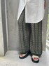 【21AUTUMN LOOK掲載アイテム】エッジの効いたアイテムで合わせたオトナカジュアル。〈トップス〉キルティング加工されたブラウス。キルティング=アウター のイメージを覆したキルティング×ブラウス。この組み合わせは私も初めてで、合うんだ!と同時に無地なのに一癖あってすごいオシャレ!と思いました◎お尻がすっぽり隠れるロング丈なので、今回は〈パンツ〉21AWトレンドにもなっている ″アラベスク柄″ のジャガード編みニットパンツを合わせました。さほど厚手ではないので今のシーズンでも着れますし、肌寒い季節になれば下にタイツを忍ばせて履いても良いです◎ 白Tや、スウェット、ラフなアイテムに合わせても手抜きに見えない柄パンツ。身長154cmの私で3cm高さあるボリュームサンダルで合わせて擦りませんでした。是非チェックしてみてください!