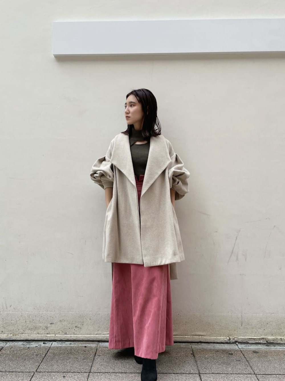 甘め、が今のキブン。ピンクを着るとやっぱり気持ちが高まります。そんなコーデの一番のポイントは、ラグナムーンのランウェイチャンネルの表紙にもなっているミルキーカラーがかわいい《コート》今回わたしは、展示会1番人気のアイボリーを選びました◎ 贅沢なWOOL100%をたっぷり使用したミディアム丈のコートは ①二重織素材で生地が分厚い ②アームが広いから着込める ③細かくタックが入っているのでどの角度から見てもシャープな印象になる ⑤肩から落ち感があるので広がって見えない 。良いところが盛りだくさんです。本当に可愛くて可愛くて、2色ほしいほど。小柄の方にぜひ挑戦していただきたいミディアム丈のコートです。《トップス》ボレロを前後着方を変えるだけで服のテイストを楽しめる2WAYニット。シャリ感ある素材なので、インナーのタンクトップは春夏にも活躍しそうです。《スカート》ウエスト60cmのわたしがバックゴムをきつく設定して″ジャストサイズ″で履けた幻のスカート。サイズがあうものってなかなかないのでこれほ即決しました。美しいシルエットに注目。ぜひチェックしてみてください!