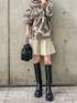 紅葉デートをイメージしたオトナカジュアルコーデ。WEBカタログでNikiさんが着用されているラグナムーンの冬ニット。これは私の冬の大本命!大胆なフラワーパターンデザインが目を引く 《ニット》。この柄が本当にかわいいです。ルーズだけど女性らしさを忘れない、この拘りぬいたフォルムがLAGUNAMOONらしくて大好きです。起毛なのでチクチクせずふわふわ柔らかい着心地○。首元がボトルネックデザインなので、顔まわりスッキリ、小顔見えします◎ 前回ネイビーを着用して、すぐに購入したのですが、今度はモカがほしくなり追加で購入を考えています← 《ボトムス》今年トレンドのレザーパンツ。一着は持っておきたいレザー。私は身長154cmで、こちらのパンツは丈が長めの設定なので、ウエストをひとおりして履きました!《ブーツ》レインブーツとしても活躍するブーツ。このボリューム感が太ももを細く見せてくれるので、ご試着されたお客さま全員足が細く見えると感動されています!!是非一緒にチェックなさってください◎