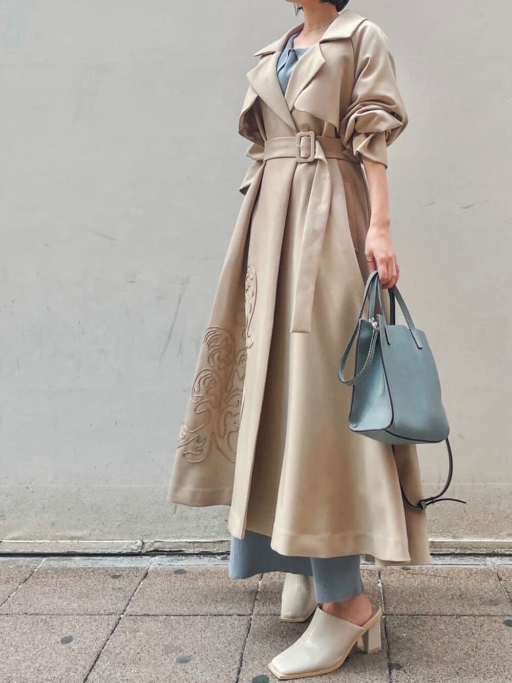 akari(ELENDEEK)のトレンチコート「エンブロイダリートレンチコート」を使ったコーディネート