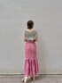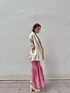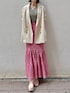 色と色の組み合わせでこなれ感アップ◎ピンクを主役にキレイめカジュアルコーデ。【ジャケット】粗野でカジュアルな素材感なので、フェミニンなアイテムとも合わせやすいジャケット。リネンのような風合いがあり、さらりと肩肘張らずに羽織れるので夏にも活躍間違いなし!【トップス】アシメトリーデザインがラグナムーンらしい。無地だけど、素材で遊び心もいれていていつものお洋服に変化をでしてくれる一着。【スカート】春夏の大本命!リーフレーススカート。腰周りはピタッとして太ももあたりからふわっと広がるマーメイドはスタイルアップ効果◎◎154cmのわたしも高身長の仲間入りした気分。。(嬉)【サンダル】毎年定番!オープントゥサンダル。これまでと比べ軽さをだしているので歩く時に足に負担がかかりにくいです。ぜひチェックなさってください!