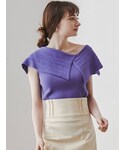 ◤ 着痩せ重視の綺麗めコーデ。 【トップス】トレンドのビックカラーデザインはさり気なくアシメトリーに。ビックカラーデザインにボリュームがあるので、小顔効果◎ 胸元開きすぎないかなと不安でしたが肩幅狭め&なで肩の私でも安心して着れました!夏らしいビビットカラーが着るだけで気持ちを上げてくれます。【スカート】下半身を補正してくれるかのようなフィット感のタイトスカート。ウエストゴムでリボンで調節可能なのでとことん細くみせたい方はキツめに絞ると〇。お写真では分からないですが、とても生地に伸縮性があるのでタイトなのにしんどくないです。店舗ではディスクワークをされているお客さまにお仕事用としても人気の1着。ぜひチェックなさってください!