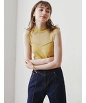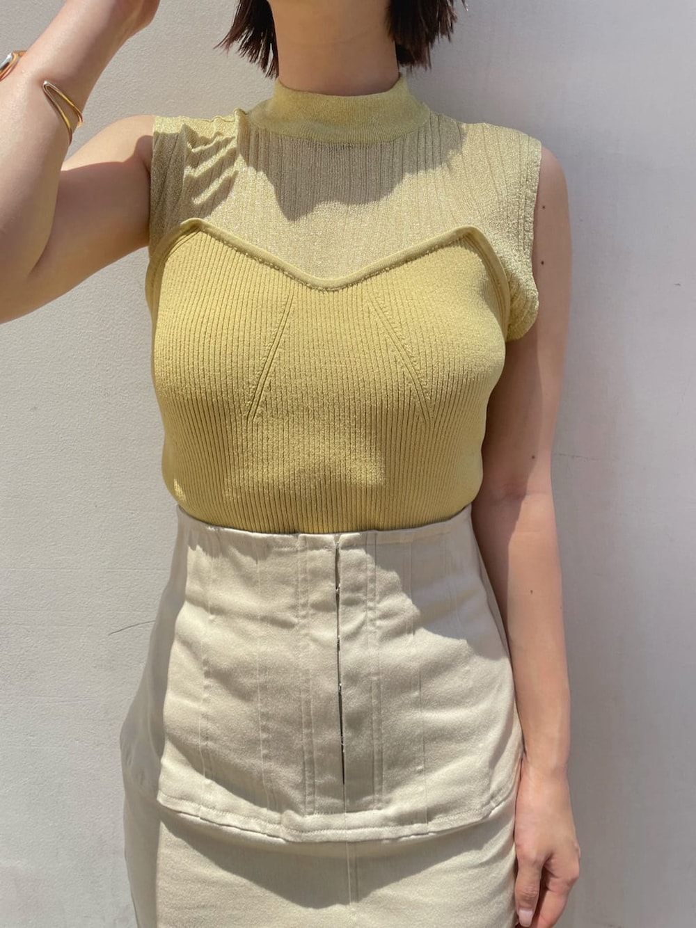 着るだけでキブンが高まる ''イエローコーデ'' 〈トップス〉太陽光にあたると煌めくラメがカワイイニット。わたしは普段デニムをよく履くのでデニム映えするイエローを購入◎ 今回はオトナっぽく落ち着いた色みのタイトスカートで合わせました。明るいカラーを着ると、コーデに彩りがでて華やかになるので夏のスタイリング、モノトーンに飽きちゃった方はイエローを挑戦なさってください。いつも履いている落ち着いた色みのボトムスに鮮度がでます!〈インナー〉久しぶりにラグナムーンからカップ付きベアトップが登場。こういったピタっとニットを着用する時はベアトップは必需品。お下着を着用した時の凹凸がです綺麗に着用できます。〈サンダル〉ラグナムーン定番サンダル。クリア部分は柔らかい素材なので痛くなりにくいです◎ クリアは毎年でており、トレンドではなく定番になりつつあるデザインなのでぜひチェックなさってください!