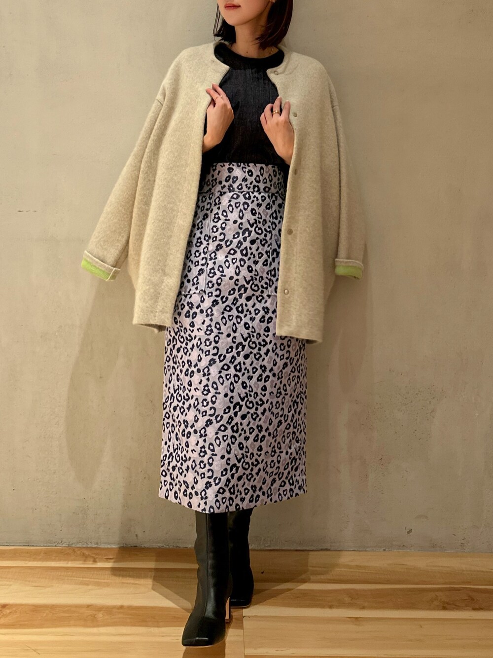 ELENDEEKらしさたっぷりのコーディネート👩🏻💐🤍 ①ブラウス:ブラウスが羽織りにもなるELENDEEKの活気的なアイデアで生まれた2WAYデザイン。ファスナーは最後まで下がるのでアウターとしても着用できます。ブラウスは別カラーのみ同素材のスカートのご用意も有りSETUP着用可能。BGEをSETUP着用したコーディネートをUPしておりますのでそちらをご覧くださいませ◎お袖にかけてたぷっと広がるデザインが可愛く、手首の部分はゴムになっているのでぐいっとお袖をあげてもずり落ちず綺麗なまま着用いただけます★こういったこだわりがELENDEEKらしくて大好きです♡ ② スカート:昨年一今年の秋にかけて大人気だったスカートがカラーが新しくなり再登場!印象的な配色のレオパード柄がスタイリングにぐっとスパイスをあたえてくれ、アウターを羽織っても存在感のある柄が素敵です♡ウエストはゴムになっており生地は分厚くしっかりとしているのでボディーラインを拾い過ぎずにナチュラルなフィット感で着用いただけます。 ぜひチェックなさってください♥