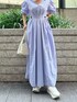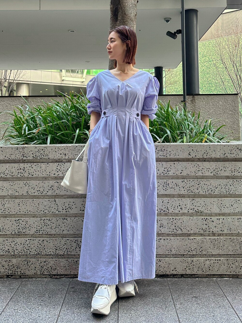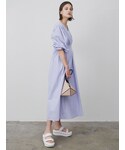 ◤ 2023SummerPRE ORDER ウエストのサイズを調整できる この春発売のワンピース🌼 ① ワンピース : ウエストボタンで1cm弱ウエストサイズを変えれるデザインが嬉しいポイント♡ ELENDEEKのワンピースはバックゴムになっているものが多いので体型の変化があっても安心◎ 今回わたしは総丈126cm/02サイズ ELENDEEKワンピースのなかでは長め設定のものを着用しましたが、名品スニーカーを履いたので擦る心配0 ✓ 正面に細かくタックが入っているのでボリューミーなワンピースもスッキリみえ、小柄の方の不安ポイント '' 着られている感 '' が感じませんでした☝🏼爽やかなアイスブルーは涼しげで、春夏にぴったり!明るいお色みのブルゾンやカーディガンのスタイリングがおすすめです☺︎ ② バック : 本革なのに、こちらの価格。中は巾着タイプになっているので中身が見えたり、落としたりする心配を軽減してくれるデザインになっています!大きすぎず、小さすぎない絶妙なサイズ感◎ ③ スニーカー : 厚底なのに軽い、高さがあるのにスニーカーだからしんどくならない魔法の靴🪄 カラーによって細かな配色が違うのでぜひチェックなさってください✓
