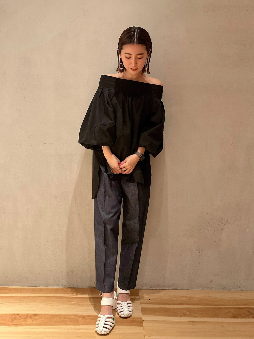 akari(ELENDEEK)のシャツ/ブラウス「オフショルダーコクーンブラウス【セットアップ可能】」を使ったコーディネート