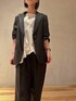 ◤ YU HIRUKAWA × ELENDEEK 比留川 游さん 着用モデル セットアップシリーズ 今回私はジャケット✖︎パンツで モードエレガンスな雰囲気に。 上下セットでお色を揃えると お子さん・職場などの行事や、ちょっとしたお呼ばれにもお使いいただけるので 同色購入がおすすめです✓ ① ジャケット : ELENDEEKの羽織りのなかでもコンパクトなサイズ感。なで肩の私でも、肩のラインが綺麗にみえて感動...✨ 羽織るだけで、フォーマットな印象を与えてくれる、上品に仕上げてくれるジャケットは1着あると万能。ご自宅にあるブラックのお洋服と合わせてセットアップ風に着るのも◎ ② パンツ : 154cmの私で01サイズ足の甲が見える程度。ダブルタックデザインで、ウエストゴムなのでELENDEEKの定番イージーテーパードパンツと比べるとゆったりめのつくり。腰周りが気になられる方も安心の、ヒップから太ももにかけて分量をとっているのでボディーラインがでにくくなっております🌼 ウエストXS-Sサイズで華奢な方はベルトで小さくサイズ調節できます♡ ③ トップス : 正面にたっぷりあしらわれたプリーツが、ジャケットを羽織っても存在感◎ ジャケットスタイリングがマンネリしない目を引くブラウス。Vカットは深めではないので胸元開きが苦手な方も安心してお召しいただけます。 是非チェックなさってください♡