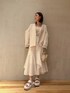 春のはじまり。☺︎🌸 ワントーンコーデ スカート3月下旬発売予定 ──────────── 凹凸感ある素材がELENDEEKらしい シアサッカー素材を使用した アシメトリーフレアスカート。 IG LIVE でも大人気だったstyling ♡ ① アウター : 昨年凄まじい勢いで在庫がなくなり、購入できなかった方が続出。スレンダー・グラマラスの方、小柄・長身の方、体型身長骨格問わずに皆さんから愛されているアウターは、ヒップが隠れる丈が嬉しいポイント◎ リラックス感あるショート丈は着膨れが心配されますが、ELENDEEKのショートコートは細かくダーツが入っているので背中の膨らみをおさえ、横から見てもスッキリとした印象になります。交通機関・お車でご移動の方はショート丈なので座りやすく身幅とらないのでおすすめです✓ ② スカート : 360℃どの角度からみても違う見え方のアシメトリーフレアスカート。ウエストがゴムになっているのでストレスフリーな着心地🍃 私は154cm_ウエスト61cmでジャストサイズ。01サイズ最大76cm - 02サイズ最大79cm ウエストが伸びるので体型問わず着用いただきやすいサイズ感です◎ からだにまとわりつかないので蒸し暑くなるこれからの季節に重宝間違いなしです...✨ 素材上、すこし透けやすいものになっておりますのでお下着はベージュ・モカ・ピンク・グレー系がおすすめです😌 ③ サンダル : 履き心地ふわふわふかふか。ベルト部分も同じ素材なので、痛くならないサンダル。夏に重宝間違いなしなので、私は黒色をオーダーしましたが白色も追加で購入予定..✨6cm高さがあるのに、しんどくならないところが154cmの私には嬉しい♡ サンプルなので38/24-24.5cm着用。普段足のサイズは23cm。38を履いてみたところ2cmいかないくらいゆとりがあったので37で丁度よさそうです◎ 是非チェックなさってください!