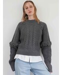 ◤PRE ORDER ① ニット : トラディショナルなケーブル編みと装飾性のあるフリンジで存在感のある一枚。比較的コンパクトなサイズ感なので、ケーブル=カジュアルいうよりこちらのニットはモードで格好良い印象でお召しいただけます。シャツワンピースの上から重ね着するスタイリングもおすすめ。 ② ボトムス : 履くだけで足長効果抜群。撮影時154cm02(M)着用。さらりとした生地で着心地◎ 写真をみて驚!154cmですが履くだけで高身長見え&スタイルアップ間違いないです!ブラウスで合わせるとセレモニーにも参列できるエレガントさなので、1本あると重宝します。 是非チェックなさってください。