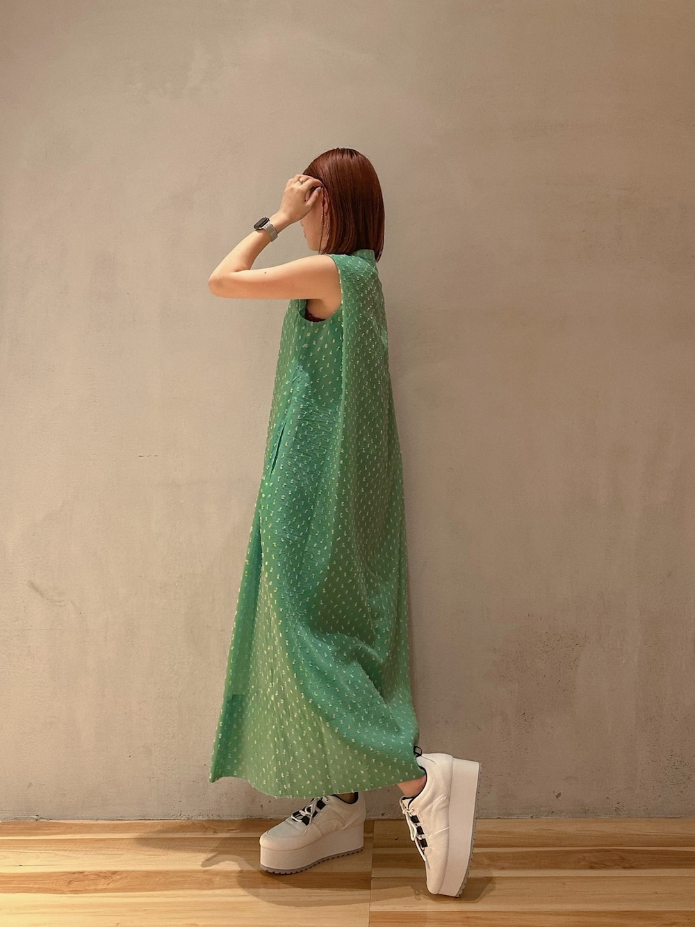 akari(ELENDEEK)のワンピース「スタンドカラーボックスワンピース」を使ったコーディネート