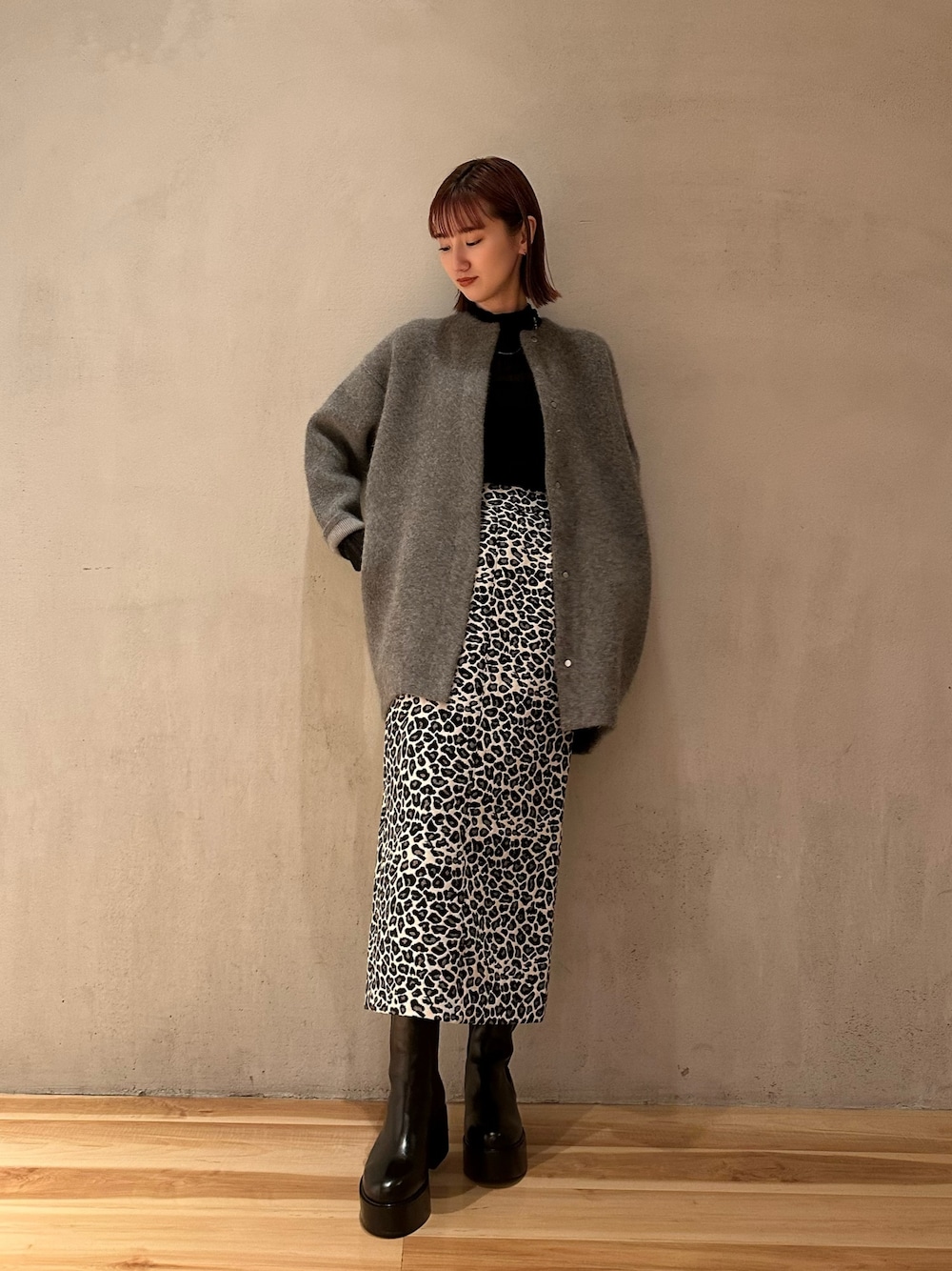 154cm でも格好良く。 オトナモードスタイリング◯ 【カーディガン】 冬の本命アウター。コレさえあれば冬は大丈夫と言えるほど保温性抜群。私は今年冬のコートを買わない代わりにラクーンカーディガンを2色購入。毛足の長いラクーン素材なのでチクチクせず、素肌に触れてもストレスフリー。154cm 01サイズでヒップすっぽり隠れました。リラックス感あるけれど、計算された拘りフォルムが着膨れせずに見せてくれます。年齢を重ねても、好みが変わっても、着る服のシルエットが変わっても、安心して着れるラクーンカーディガン。何色あっても心強いアイテム◯ 【スカート】 オトナモードだけど、辛口すぎない。肉厚な生地でラインを拾いすぎないのでヒップライン安心。アウターを羽織っても存在感あるレオパードは秋冬のスタイリングにひとつ取り入れるとコーディネートが華やかになります✓ ゆるっとしたニットや、ブラウス合わせもおすすめです。 是非チェックなさって下さい✓