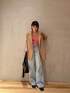 akari(ELENDEEK)のデニムパンツ「ワイドストレートデニムパンツ」を使ったコーディネート