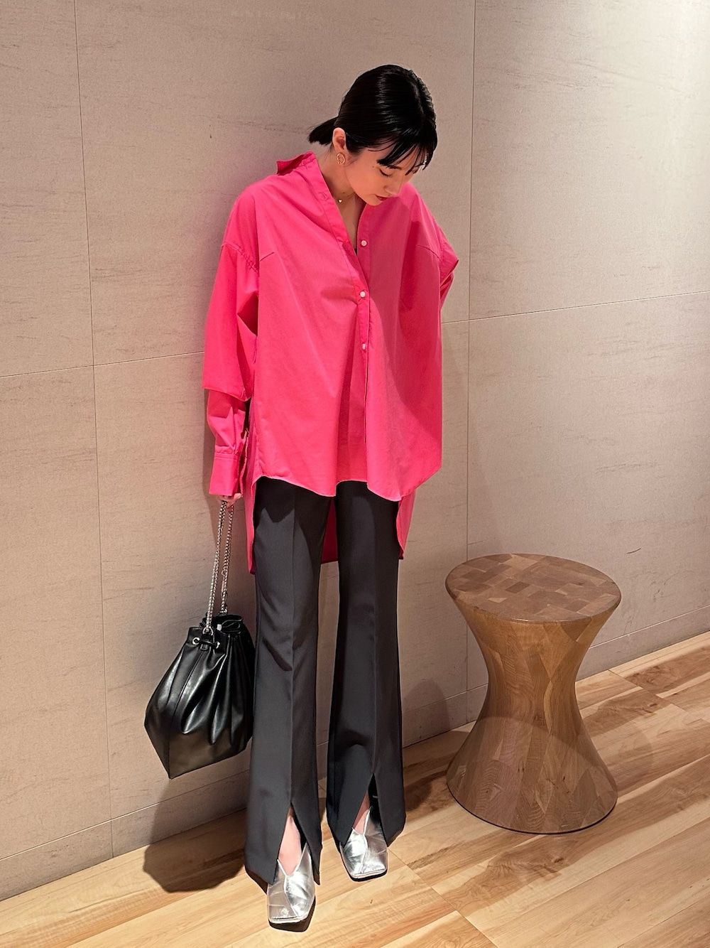◾︎ ブラウス 店舗限定 '' ピンク '' お在庫状況などお気軽にお近くの店舗へお問い合わせくださいませ。オーバーサイズだけど後ろにボリュームがあるので着膨れゼロ。下半身カバーを叶えてくれます。着るだけでこなれ感あるスタイルに。全部ボタンをあげて羽織りとして春夏着ても◯ ◾︎ ボトムス シワになりにくいイージーケア素材を使用したフレアパンツ。驚くほど足を美しく見せてくれます。前スリットで足さばきも◯ 是非チェックなさってください✓