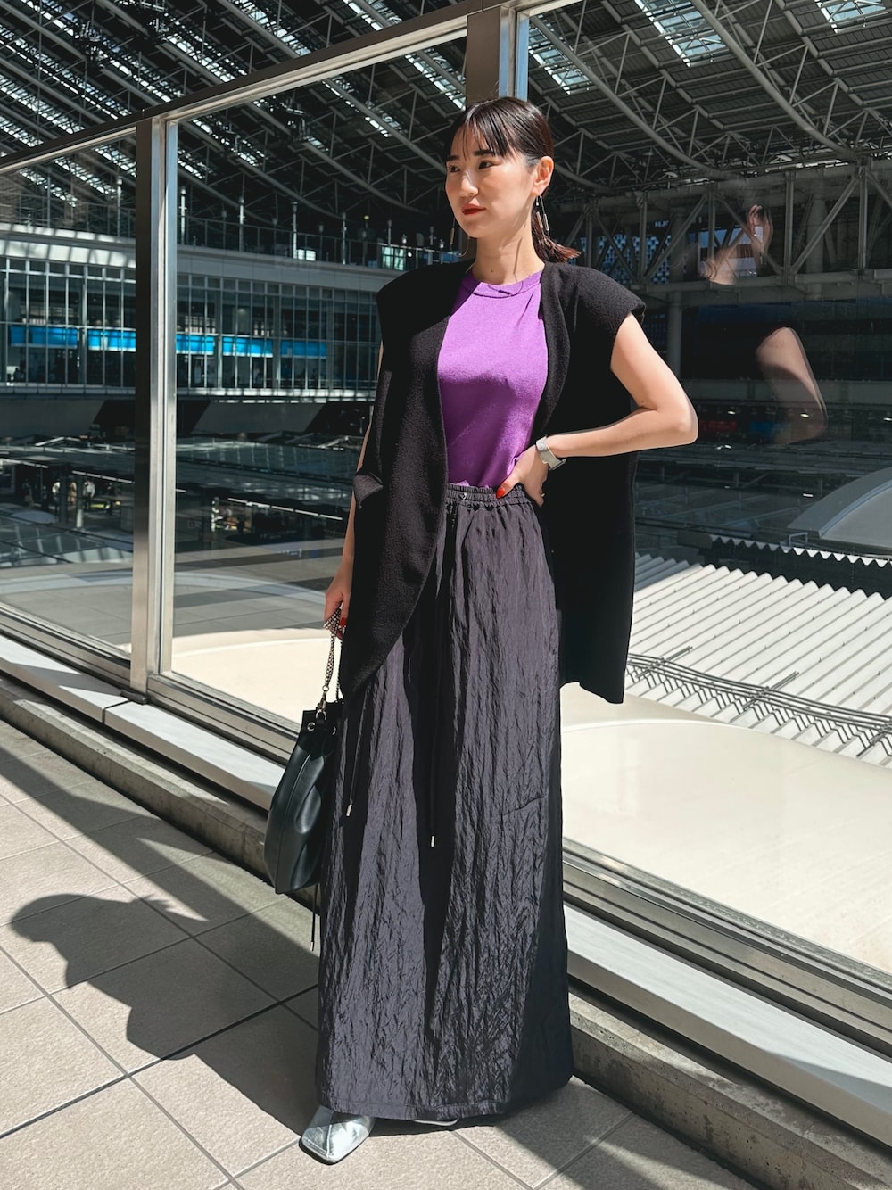 2024Spring PRE ORDER 夏らしい軽やかな素材で ブラックコーディネートも涼しげに。 程よいリラックスシルエットのジレ 肩のラインが綺麗に見える薄めの肩パッド付き 大きなポケットが付いているので 携帯などの収納も◯ スカートはサンプルのため02着用 ウエスト総ゴムでストレスフリー 紐でサイズ調節できます。 元々シワ加工されているので シワを気にせずお召しいただけます。 春夏あるとこればかり履いてしまいそうな 1着。