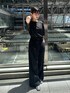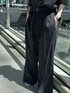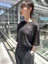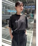 ◾︎ トップス シアーTシャツとシャイニー素材カップインキャミソールのセットアイテム。Tシャツからかすかに透けるインナーの光沢感がスタイリングのアクセントに。からだのラインを拾わない抜け感をつくってくれる大人のTシャツ。 ◾︎ パンツ 同じ素材の細ベルトがセットになっておりウエストまわりのポイントに。両サイドに同素材で切り替えを入れた、主張しすぎないサイドラインがアクセントに。ブラックは目の詰まったやや光沢のあるナイロン混の綿素材です。ストレッチ性もありはき心地も〇