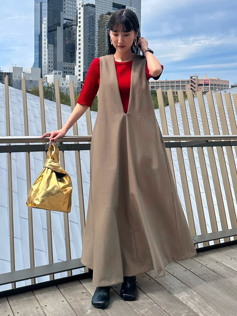 2024.9.26 ELENDEEK 川上桃子さん コラボインスタライブご紹介アイテム ◾︎ トップス シャリ感ある素材が特徴のニット。程よいフィット感でからだのラインを美しく見せてくれます。触れて、毛玉レスだな。と感じる丈夫な生地。アウターのインナー使いにこれからのシーズンオススメです。背中開きは通常のお下着の肩紐を長めに設定すると私は気になりませんでした。 ◾︎ ジャンパースカート ライブご紹介後店舗オンラインストア共に即完売した幻アイテム。ゆったりめのサイズ感ですので店舗ではマタニティとしてもままさんから人気。普段Mサイズ02の方もSサイズ01で選ばれる方が多いです。丈でお選びください○インナー次第でロングシーズンお楽しみいただけるジャンパースカートはボンディング加工でしわになりにくいです。 ◾︎ ブーツ 柔らかな牛革を使用したブーツ。履けば履くほど足に馴染みます。スクエアトゥなのでつま先が痛くなりにくいのが特徴。毎年歩きやすいと好評のアイテムです。22〜22.5cm 37ゆとりあり。分厚い靴下履くと◯ ◾︎バック 500㎖のペットボトルもなくなく入るサイズ感。コンパクトだけど荷物もしっかり入ります。スタイリングに+αするだけで、今年っぽくアップグレードされるので、METALLICまだお持ちでない方は是非挑戦なさってください。