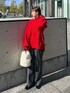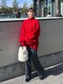 ELNDEEK モード服。 ◾︎ コート 贅沢に生地を使い、身幅と袖を広くとってケープのような見え方に仕立てた軽やかなコートは暖冬にもおすすめな1枚。高めのスタンドカラーは前方に角度をつけ、顔に当たりずらい設計にし快適さをキープ。前を開けるとビックカラーのような見え方に。155cm 普段01を着用している私で、フリーサイズのコート手がすべて隠れました。170cm前後の方でも袖丈長めですので丁度よくお召いただけます。分厚いニットもするりと腕が通りました〇 ◾︎ ニット 伝統的なケーブルニットのような手法を用いながら、ヴィンテージ感のある大胆なダイヤ柄を使用。お顔映えする1枚です。もちもちした素材なので素肌に触れてもストレスフリーでした。着丈が長めなので下半身カバーも叶えてくれます。立ち上がりがある首元でお顔スッキリに〇 ◾︎ ボトムス 程よいフレアでカジュアルになりすぎないキレイめフレアパンツ。普段00-01サイズの私で01ジャストサイズ。通常のELNDEEKのボトムスと比べると少しコンパクトなサイズ感。ウール混なので冬もあたたかくお召しいただけます。 ◾︎ バック コーディネートのポイントになるもこもこバック。500㎖のペットボトル入ります〇 ◾︎ ブーツ 低反発クッションが入っているので高さを感じさせない履き心地。私は店頭用としてリアルバイ〇 長時間の立ち仕事も疲れを感じません。ミュールのように履くこともできるので季節問わず2WAYでお楽しみいただけます。普段22.5cmの私は37でややゆとりあり。厚めの中敷入れてちょうど良かったです。 是非チェックなさってください!