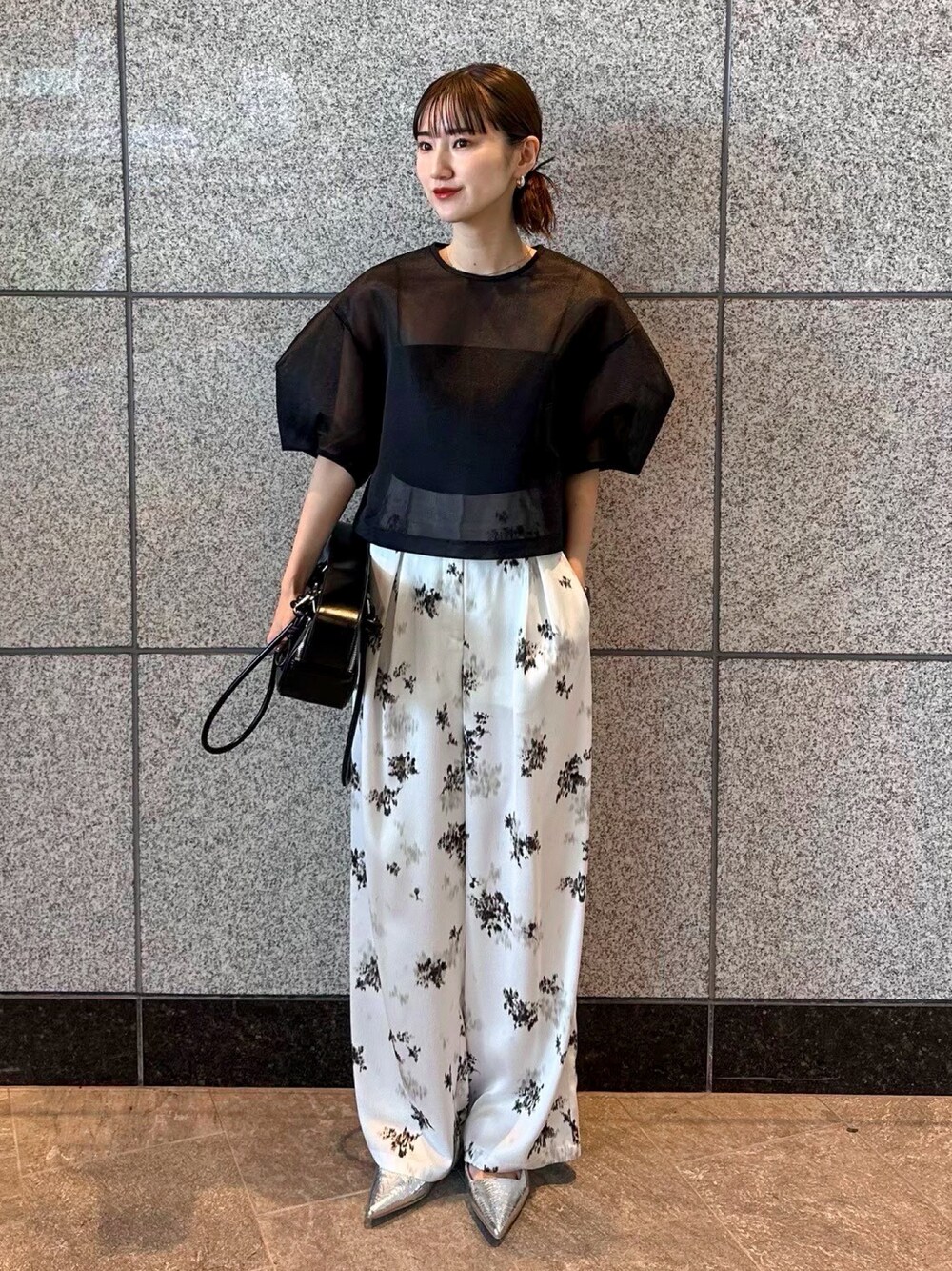 ELENDEEK 旅行に着ていきたい大人女子服。 @elendeek_akari REEL公開中 ◾︎ トップス 3月中旬お届け予定 光沢、ハリ、立体感のあるシアートップス。インナーは私物のカップ付きキャミを使用。キャミソールの紐が見えても可愛いです〇 Tシャツのような形がカジュアルダウン。特徴的なメッシュ素材が清涼感をプラスしてくれ、非常に軽く着やすい1枚。春夏重宝間違いなしです。 ◾︎ ボトム 3月中旬お届け予定 サンプルのため02サイズ着用。ヒールありで裾上なしでも〇花柄をぼかしたような抽象的なニュアンスのオリジナルプリントを使用したタックワイドパンツ。凹凸のあるリップル調のサテン素材にオリジナルの柄をプリントし表情のある素材感。後ろウエストはゴム仕様なのでストレスフリーで着心地抜群です。柄ボトムはシンプルなトップスに合わせるだけでスタイリングを新しく見せてくれるアイテムです。 ◾︎ シューズ サンプルのため38サイズ着用。リアルオーダーは37サイズにしました。38サイズで普段より大きいサイズを履いたのですが驚く程の安定感。7cmヒールですが、私の体感は3cm。全色買いしたいほどのお気に入りです。傾斜がキツくないのと、ふわふわソールクッションが歩きやすいポイント。スタイリングに取り入れるだけで今っぽさが叶います。 ◾︎ バック 今年注目されているボストンバック。腕を通す持ち手が長めなので、冬コートもなんなく通ります〇 中にはサイドポケットがふたつあり、500㎖ペットボトルもはいるサイズ感です。 是非チェックなさってください。