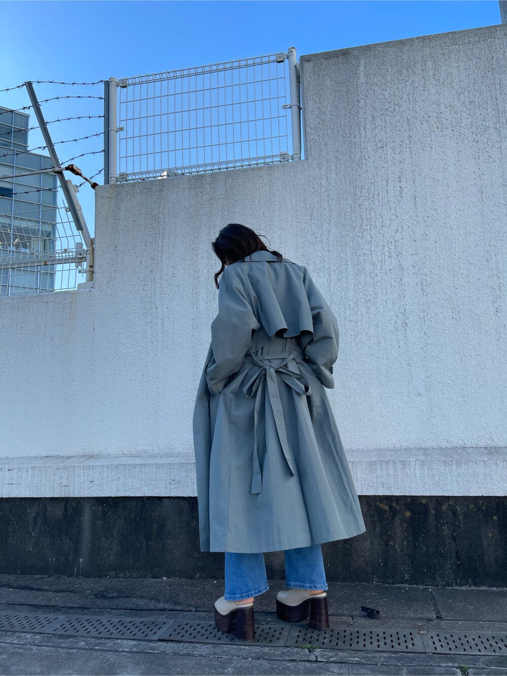 花島郁(EMODA)のトレンチコート「オーバーサイズトレンチコート」を使ったコーディネート