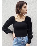 花島郁(EMODA)のサンダル「Vカットポインテッドヒール」を使ったコーディネート