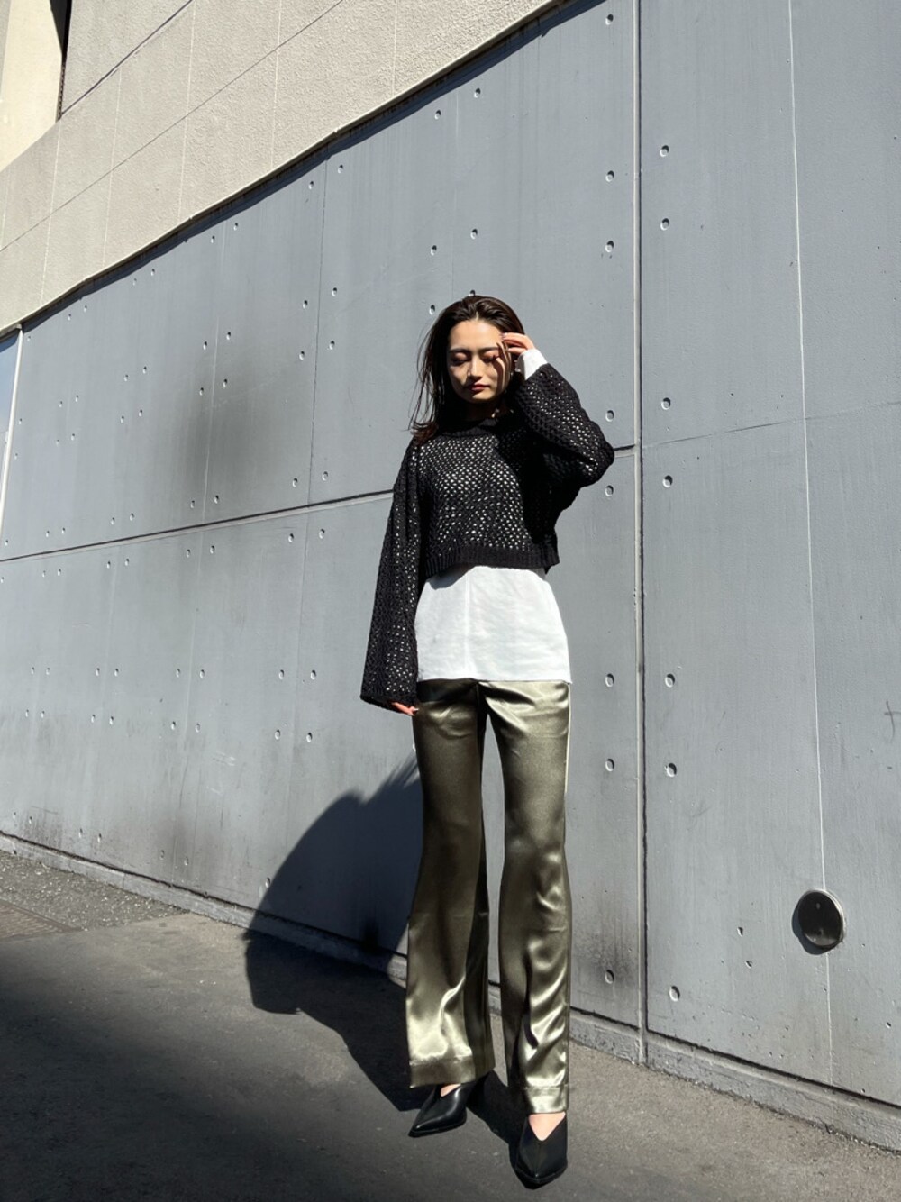 花島郁(EMODA)のサンダル「Vカットポインテッドヒール」を使ったコーディネート