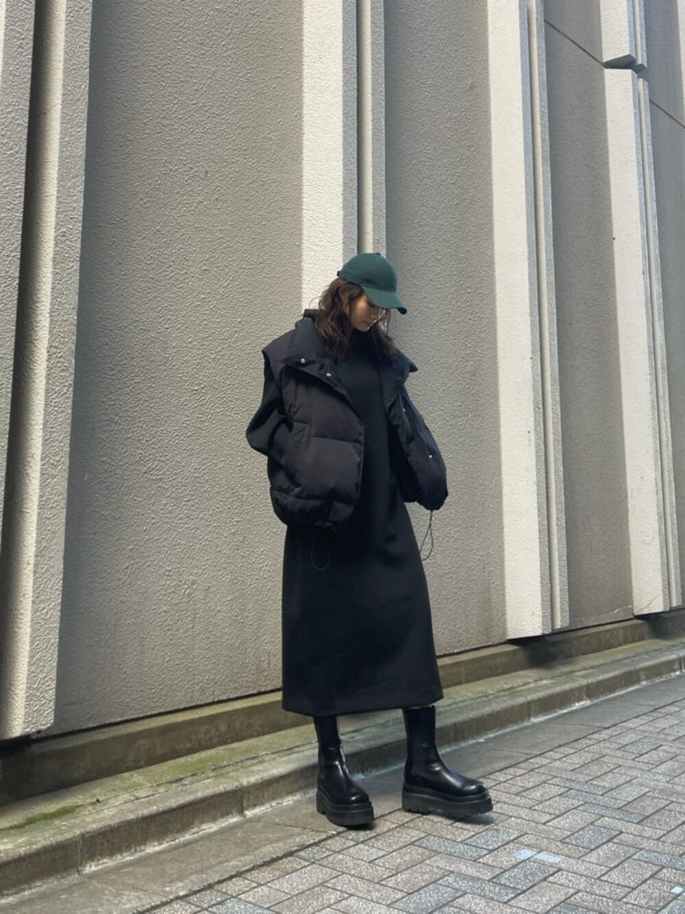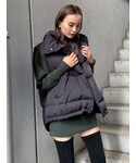 花島郁(EMODA)のダウンベスト「オーバーダウンベスト」を使ったコーディネート