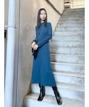 シルエットが綺麗なワンピース❤︎一枚でも上からショート丈のトップスなどレイヤードしても可愛いです◎ブーツはミドル丈なので、ロングワンピ合わせでもミニ丈でも可愛いですよ☺︎ソールのウッドのワンポイントも可愛いですよね❤︎