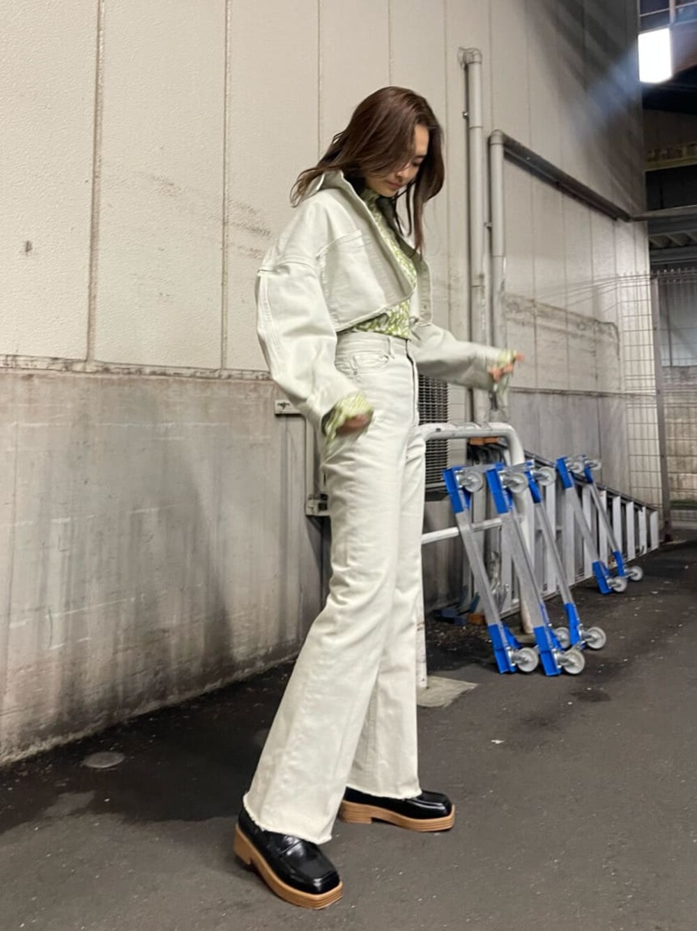 花島郁(EMODA)のローファー「ウッドローファーシューズ」を使ったコーディネート