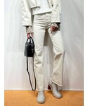 今季トレンドのセットアップとチェッカー柄でスタイリングしてみました❤︎パンツは168センチの私でも少しシューズに裾がかかるくらいの丈で履けたので高身長の方におすすめです☺︎合わせたローファーもソールがウッドになっているので春っぽくて可愛いです☺︎インナーに合わせたチェッカー柄のtopsはニットやトレーナーなどとレイヤードして着るのもおすすめ◎是非チェックしてみてください!