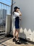 大人気のデニムワンピース 【ワンピース】形が可愛いデニムワンピース❤︎肌見せの部分は胸のすぐ下くらいになっているので、胃下垂さんの食後のぽっこりお腹もきになりません❤︎167センチでSサイズでこの丈感なので高身長の方におすすめのワンピースです! 【シャツ】トレンドのクロップド丈!かなり短い丈感になっているので、脚長効果抜群です。 【シューズ】定番の厚底サンダル❤︎今年も13センチヒールです◎24.5-25センチの私でLサイズ履けているので足が大きめの方にもおすすめです!
