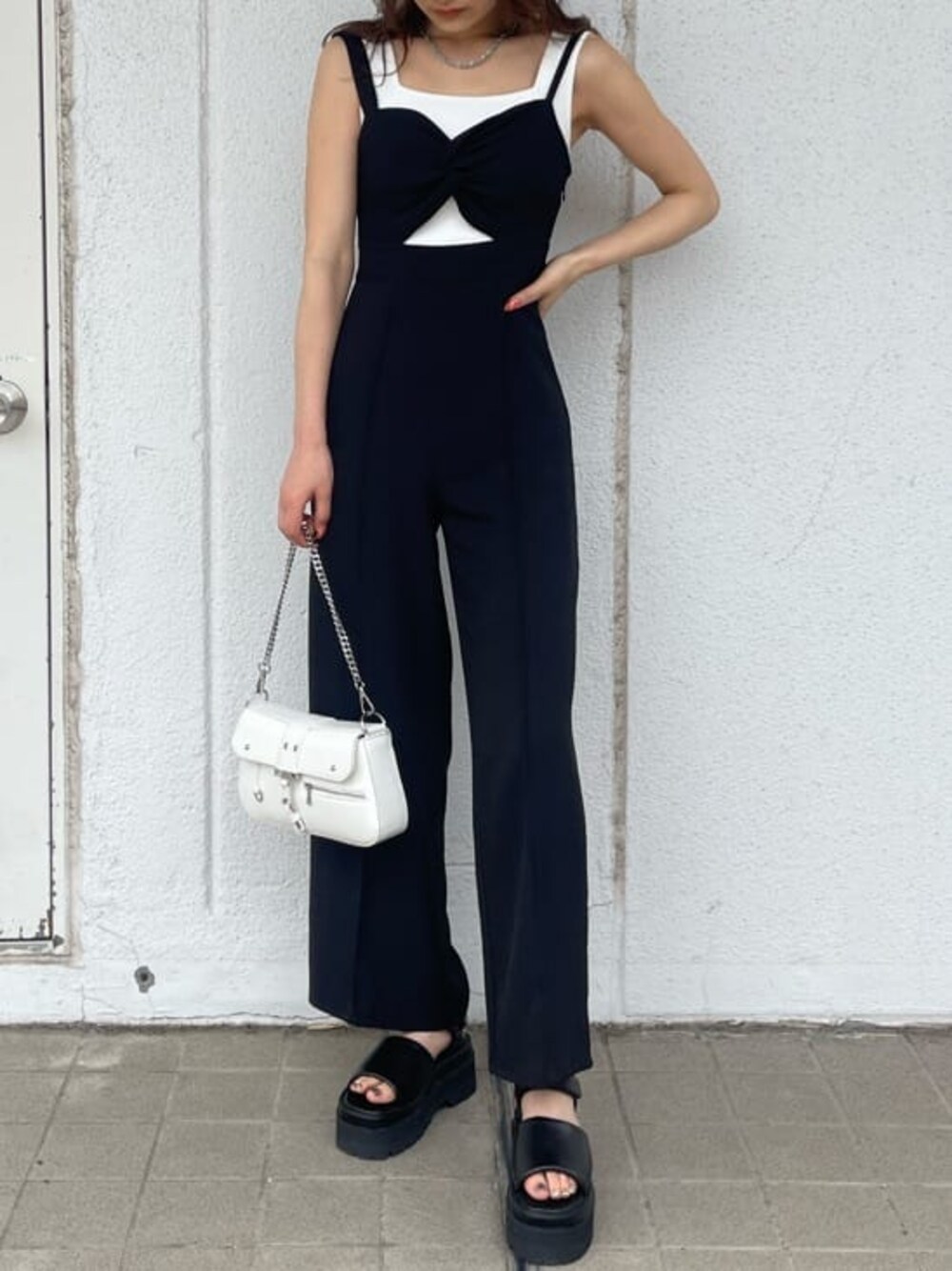 夏のモノトーンエモダコーデ❤︎【オールインワン】シルエットがすごく綺麗なオールインワン!上半身はかなりタイトなシルエットですが、後ろはギャザーになっていて伸縮性もあるので着やすくなっています!167センチの私でくるぶし隠れるくらいの丈感です。【シューズ】厚底ですが、フラットなのでとても履きやすいです❤︎24.5-25の私でLサイズ着用です!【タンクトップ】インナーに合わせたタンクトップは肩の部分が太めのデザインなので、下着を気にせず着ていただけます◎こちらも再入荷の人気商品です!