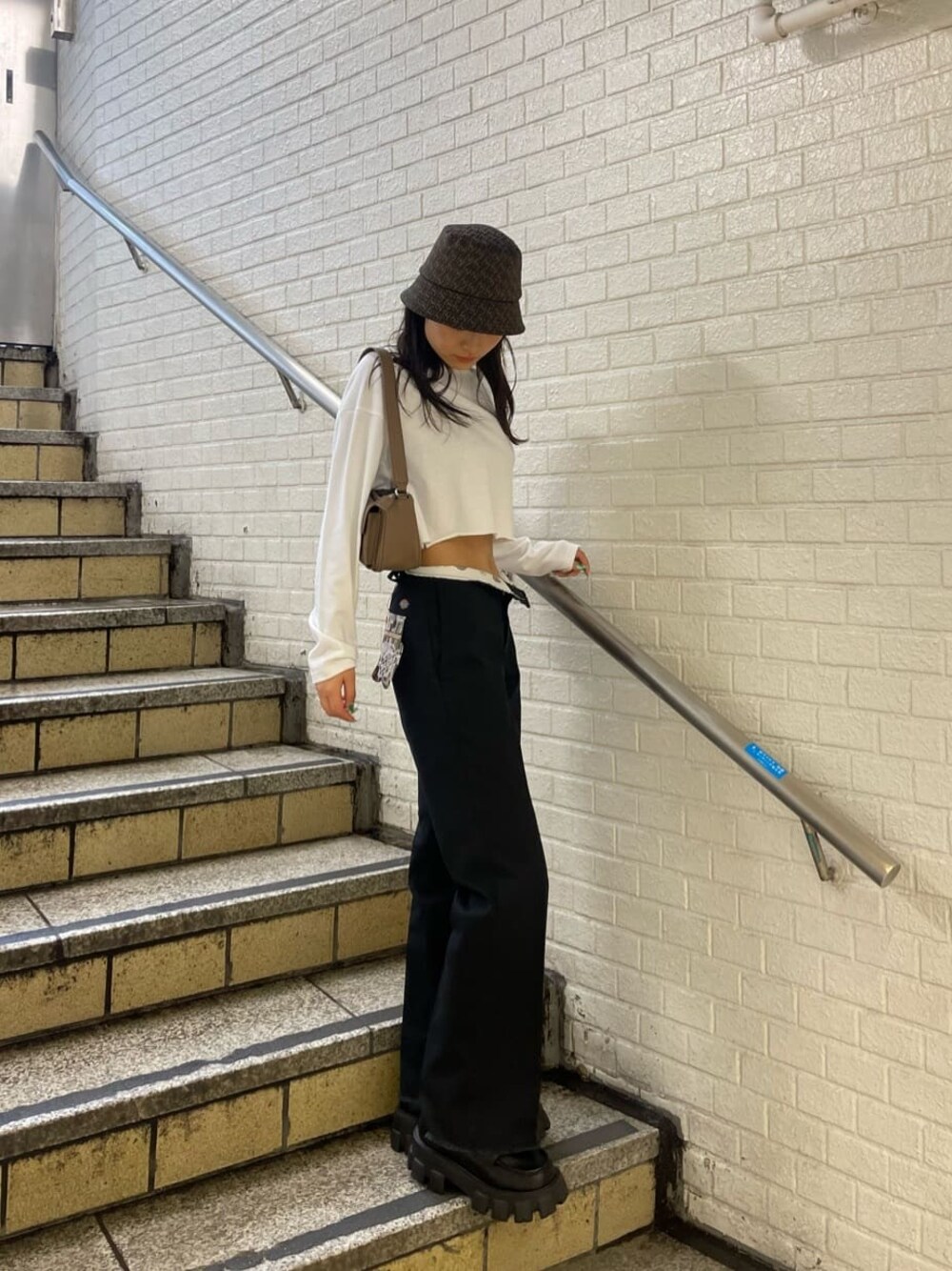 今季のトレンドコーデ❤︎【ロンT】袖のボリュームで細見え効果◎ハイウエスト合わせだと167センチでちょうどお腹見えないくらいの丈感です!【パンツ】ディッキーズのコラボアイテム!167センチの私で地面つかないくらいの丈感です!【バック】マチが広めなので大容量◎ポケット付きで機能性も抜群です!
