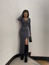 花島郁(EMODA)のワンピース「Vネックスリットマキシワンピース」を使ったコーディネート