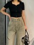 花島郁(EMODA)のデニムパンツ「ハイカットルーズワイドジーンズ」を使ったコーディネート