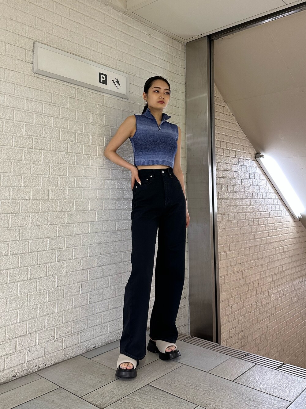 夏のカラーコーデ🩵 【トップス】 パイル地で夏にぴったりの素材です! グラデーションのカラーがパキッとしすぎていないので、カラー物苦手な方でもチャレンジしやすいですよ◎ 【デニム】 167センチの私でもSサイズでずるっと着用できました🙆🏽♀️ 【シューズ】 柔らかい生地で履き心地抜群✨ 足が大きめの方にもおすすめです◎