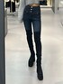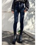 クリスマスデートコーデ 【ニット】 グリッターがクリスマスっぽいキラキラ感で可愛い♡ 形もシンプルなのでどんなコーデにもおすすめです! 【デニム】 インディゴのカラーでもかなり深めのカラーなので細見えします◎ 【ブーツ】 24.5-25センチの私でLサイズ着用です。 ミニスカコーデにもおすすめです!