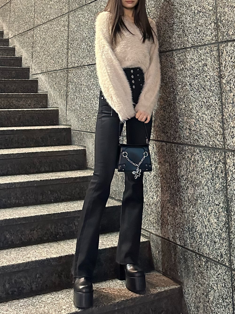 激盛れコーデ 【トップス】 店舗限定リピートです♡ 気になる方はぜひお店に遊びにいらしてください🤭 【デニム】 今回のデニムは丈が長いので、厚底合わせすると脚がとっても長く見えます♡ レースアップで少しサイズ感の調節も可能です! 【ブーツ】 大人気だったブーツもリピートしました! 24.5-25センチの私でLサイズ着用です!