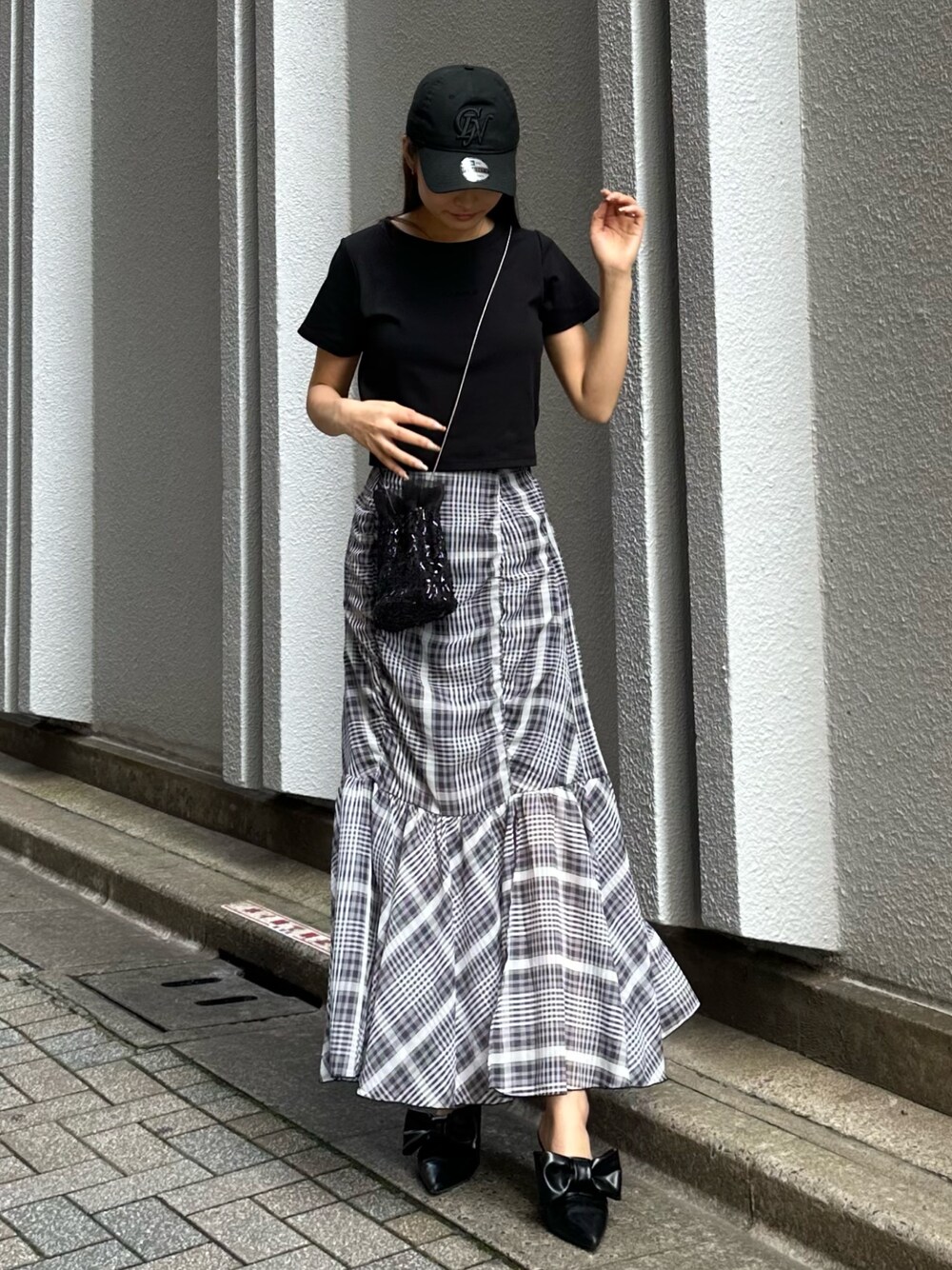 【トップス】 すっきりした丈感のTシャツです。 シンプルなのでどんなコーデにも合いますよ。 【スカート】 スリットが入っているので歩きやすいです。 とても軽い生地なので、今の時期にぴったりです♡ 166センチの私でマキシ丈で着れました♪ 【シューズ】 24.5-25センチの私でLサイズ着用です。 合皮なので馴染みやすいです!