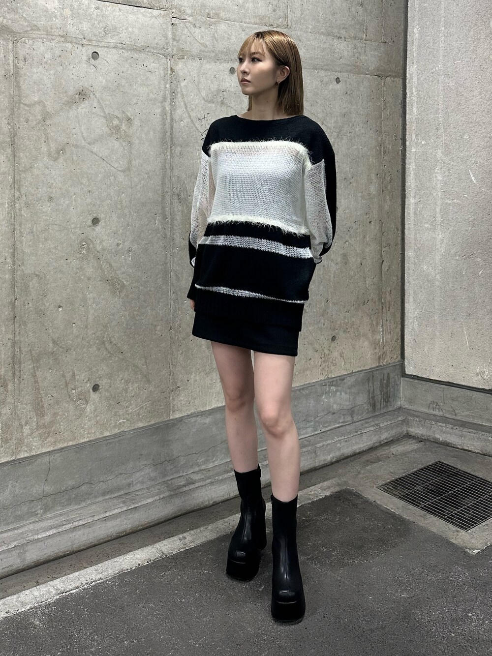 武島マリアのニット/セーター「メッシュルーズニット」を使ったコーディネート