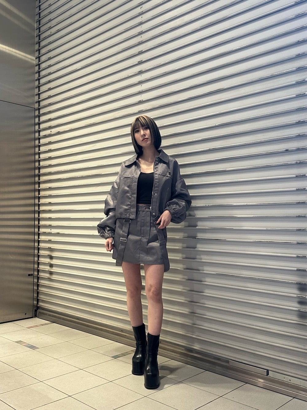 武島マリアのブルゾン「ボックスEマークショートブルゾン」を使ったコーディネート