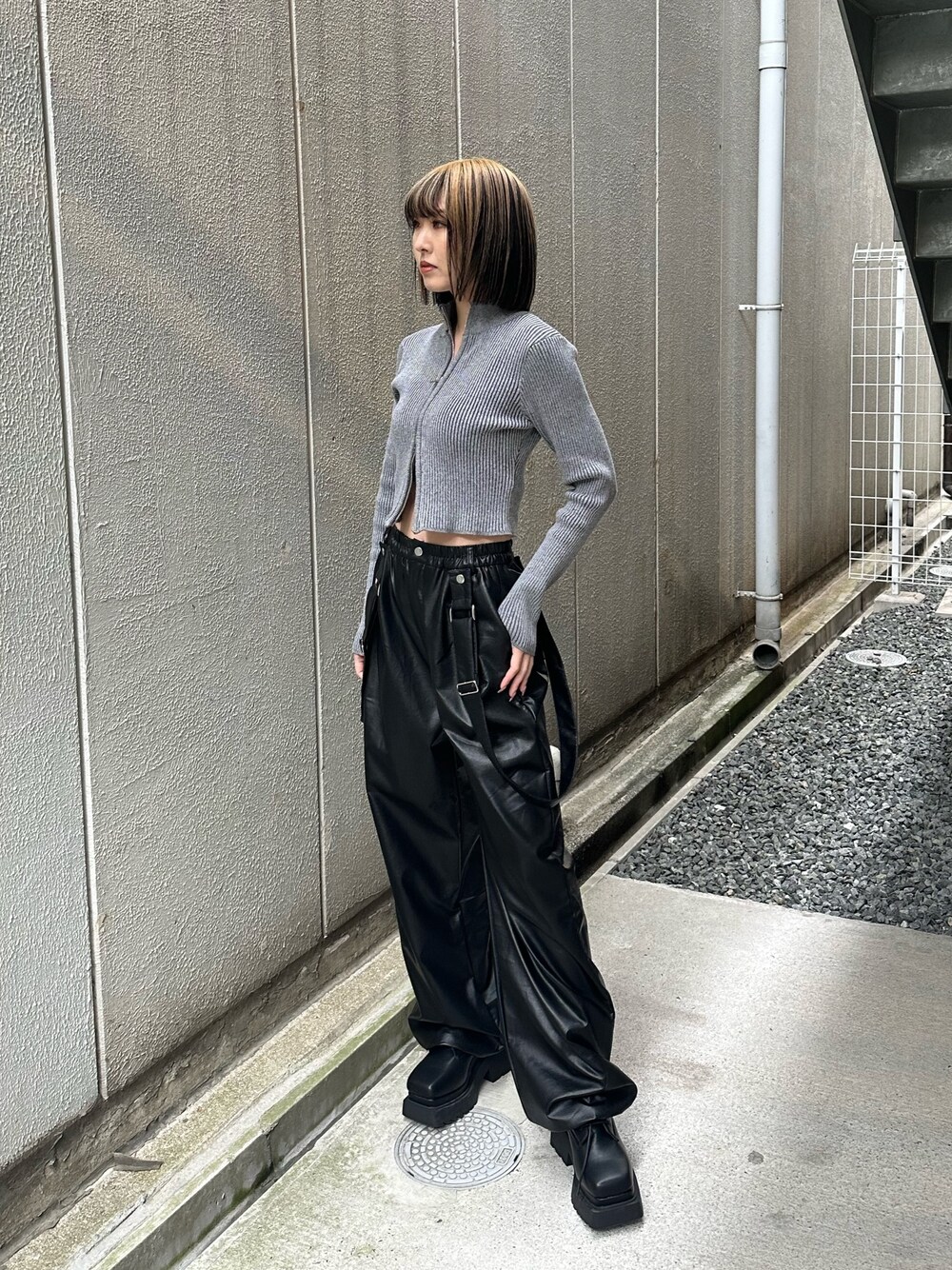 武島マリアのニット/セーター「プレーティングリブジップニット」を使ったコーディネート