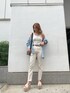 髙田真生(EVRIS)のデニムパンツ「THIGH HIGHクラッシュストレートデニムパンツ」を使ったコーディネート