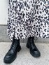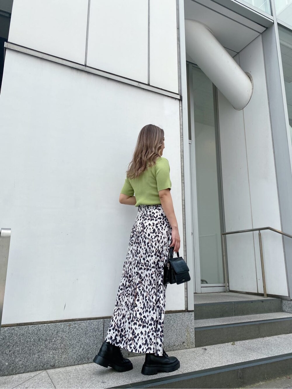大人カジュアルコーデ♡ 主役のレオパードスカートは、深めのバックスリットで、歩いた際などに動きが出て綺麗です!アイボリーベースのレオパードなので、強すぎず、色物との合わせも抜群に可愛く着れてしまいます♡ ウエスト部分が後ろ側だけゴムなので、楽に履けるのに、前から見るとシルエット綺麗に見えるのが嬉しいポイント✧︎ リブ生地のTOPSは、袖長めで二の腕細く見せてくれるので、ぴったりトップス苦手な方にもおすすめな1枚です!ボタンの開け閉めで雰囲気変えられるので、デニムやスカートなどどんなボトムにも合わせやすいです◎ ブーツは、想像以上の軽さで、合皮なので馴染みやすく、履きやす過ぎて感動する!と大好評なアイテム! キレイめスカートもブーツを合わせることで、カジュアルなワードローブにも落とし込むことができるので、普段ロングスカート履かない方にもおすすめの合わせ方です◎