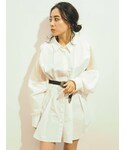【即買いした形が綺麗すぎるドッキングシャツ♡】 袖にシアーがドッキングされているデザインが可愛いこのシャツは、ウエストにタックが入っているのでくびれラインが綺麗に見えて、少しだけ裾が広がるシルエットなので、おしりや腰周りのカバーもしてくれて、可愛いだけでなく着痩せ効果も抜群! オーバーサイズなので163cmの私でもワンピースで着る事ができます◎ワンピース意外にも、夏は羽織として使ったり、前を閉じてトップスとして、デニムやフレアパンツ合わせたりとかなり着回しも出来ちゃいます✌︎ 秋先取りで、毎年人気のブラウンのデニムショートパンツとショートブーツで合わせてみました!夏服少し飽きてきちゃった方は秋先取りコーデしてみてください♡