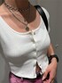 【tops】デコルテの開き方が綺麗なショートTEEは、ボタンの開け閉めで雰囲気変えられるので、綺麗めボトムにもカジュアルなデニムなどにも合わせやすい万能アイテム⭐︎生地間しっかりしているのでホワイトでも透け感気になりにくくなってます◎【denim】目を惹くピンクの色味が可愛すぎるデニムは、EVRIS定番のワイドデニムの新色で、ハイウエスト×細身のワイドシルエットがスタイルアップ効果抜群です!生地間も柔らかく馴染みやすいので、すごく履きやすく、EVRISのデニムの中でもイチオシです!!【accessory】EVRISと言えば!のベルトは、ボトム以外にも使えるように先端をくるっとまとめられる長さになっています!ネックレスは3連ですが1つに繋がっているので付け外しも簡単です◎夏は小物が主役のシーズンなので、コーデのアクセントになること間違いなしのおしゃれ小物買い足すのもおすすめです☑︎【sandal】店頭でも走り回れちゃうぐらい歩きやすく、デザインもEVRISっぽいバックルが可愛いです♡【BAG】ショルダーのチェーンがコーデのアクセントになり、普通のブラックのショルダーバッグとは一癖違うおしゃれなデザインです!内ポケットもついていて、マチも広めなのでかなり使いやすいです◎