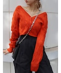後ろ姿まで可愛い春コーデ♡ «トップス»前後2wayで着用できる着回し万能アイテム☆EVRISデニムと相性のいいショート丈で着るだけで脚長効果抜群◎«デニム»163cmでSサイズ雨の日でもスニーカーで履けるぐらいの丈感です。«アクセサリー»オレンジニットなので、小物はシンプルにシルバーで統一しました。