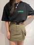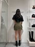 【Tシャツ】オーバーすぎないサイズ感なのでボトムインしやすい丈感です🙆♀️そでも五分袖ぐらいなので、二の腕カバーできます!【スカート】インナーショーパン付きなので163cmでも安心して履けるミニスカートです🫶夏素材で今の暑い時期でも履きやすくなってます✨ カーキで秋先取りしたり、トレンドのミリタリーコーデしましょ🤍【ブーツ】23.5cmでMサイズ着用です!