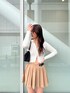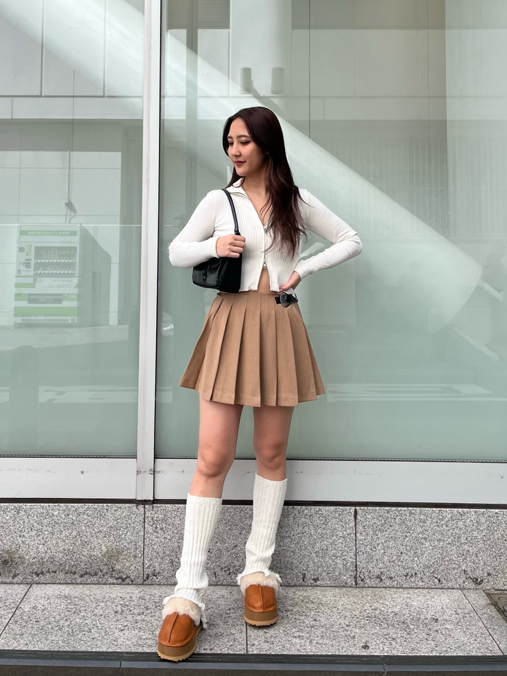Y2Kコーデ 【トップス】ダブルジップタイプのトップスなので、肌見せとしても、閉めてハイネックとしても使っていただけるので、長いシーズン着用できます◎【スカート】トレンドのプリーツスカートは、EVRISらしいベルトデザインが可愛いです♡インナー付きなので163cmでも安心して着用できます✨【シューズ】トレンド感のあるムートンスリッパは、ホールド感あるので脱げにくく履きやすいです◎23.5cmでMサイズ着用です。【レッグウォーマー】履くだけでトレンドのY2Kっぽさ演出できます💖ダメージデザインが可愛いです♡【バック】小さいペットボトルがすっぽり入る大きさで使いやすいサイズ感です◎