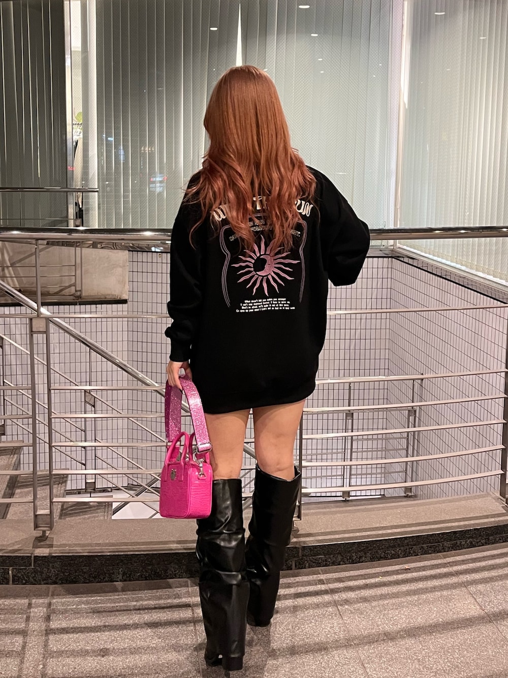 【スウェット】163cmで、ワンピース風に着用できるオーバーサイズです🙆♀️裏起毛では無いので春先まで長く使えます✨ 【BAG】ショルダーを外しても使える2wayタイプで、グリッターのショルダーが可愛いです💖マチが広めなのでミニバッグですが実用性高く使いやすいです! 【ブーツ】23.5cmでMサイズ着用です。つつ部分太めなので、足が細く見えます🫶